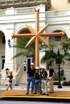 Több mint 100 darab, kézzel megmunkált, kőből készült embléma lett elhelyezve a Flag Épület padlóiban. Ezeket a mesterműveket részletes rajzok alapján vízsugaras vágással készítették, hogy a polírozott Emperador Dark márvány berakás pontosan illeszkedjen – így helyezve a Szcientológia jelképrendszerét az épület szerkezetébe.