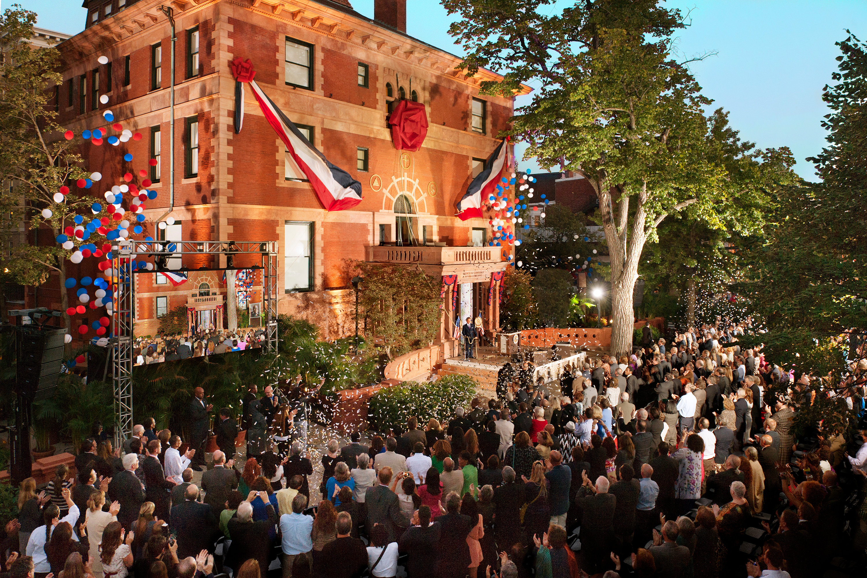 Több ezrek lelkes éljenzése közepette ünnepelik L. Ron Hubbard születésének századik évfordulóját, valamint Tampa új egyházának megnyitását egy teljesen helyreállított, 133 éves épületben, az Ybor Square-en.