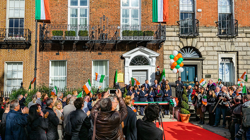 Az új Országos Ügyek Irodája néhány saroknyira van Írország olyan nevezetes műemlékeitől, mint a Nemzeti Galéria, a Történeti Múzeum, a Trinity College és a Leinster Ház, amely a Parlamentnek ad otthont. A történelmi épület a György korabeli dublini építészet egyik klasszikus példája. Az 1760-as évekből származik, még az amerikai demokrácia születése előttről, az azt megelőző időből, hogy megkezdődött az ír családok kivándorlása Amerikába. Most, több mint két évszázaddal később, ez lett az Egyház otthona növekvő missziós tevékenységeihez Írországban.