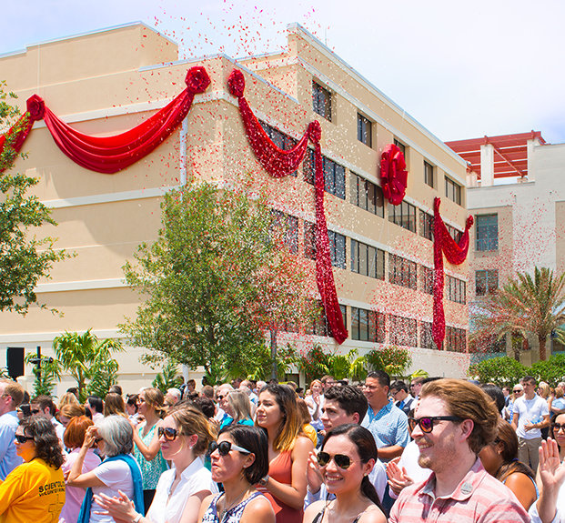 Hatalmas tömeg gyűlt össze, ahogy két szalag hullott le egyszerre a West Coast Épület (WB) és a korábban Lee Arnold Épületként ismert Flag Crew Adminisztrációs Épület megnyitóján.