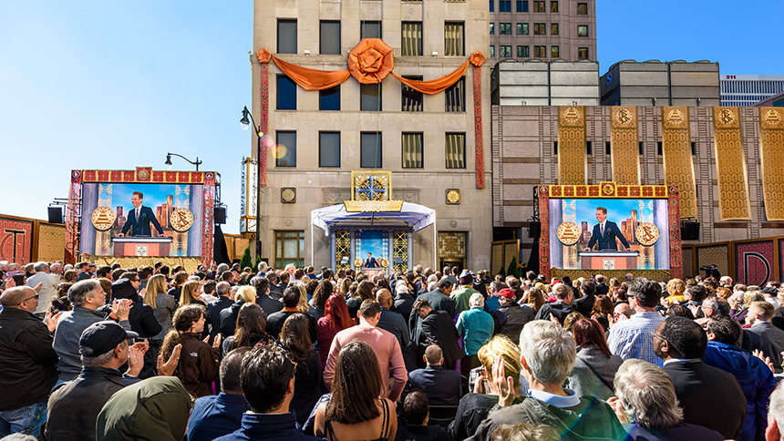 Az ünnepség háttereként a nyolcszintes egyházépület szolgált, amely a 150 West Jefferson alatti felhőkarcolótól közvetlenül keletre, a Hart Plazával szemben áll. A hely igazi alapkőnek számít: pontosan ott, ahol Fort Pontchartrain első épülete állt, amelyből később Detroit város létrejött. És hogy megvilágítsuk további jelentőségét, az 1701-ben készült eredeti épület volt a város első temploma.