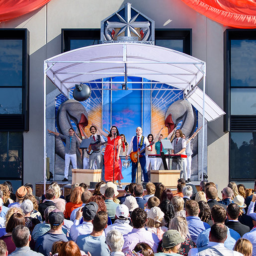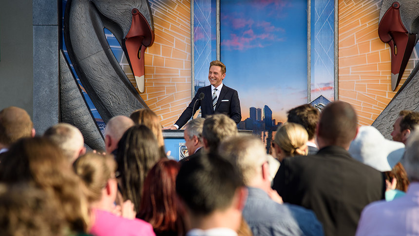 Az egyház megnyitóünnepsége pontosan ebben a szellemben indult a hagyományos ausztrál nemzeti himnusszal, amit egy helyi győzelmi dal lelkesítő előadása követett, amely tökéletesen tükrözte a perthi Scientologistok merész és vállalkozó szellemét.