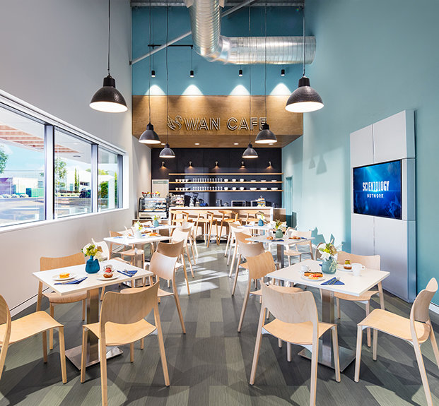 A kávézó találkozóhelyet biztosít a rendezvények vendégeinek és a Scientology-szolgáltatásokon részt vevő híveknek a szünetek alatt.