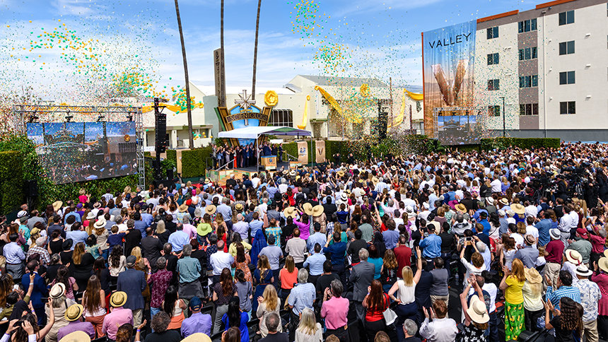 Így esett, hogy március 19-én, vasárnap 13 órakor 5000 Scientologist gyűlt össze, hogy szemtanúja legyen annak, ahogy Észak-Amerika legnagyobb ideális Scientology-egyháza életre kel. Az ünnepség méltó volt Valley új otthonának méretéhez, hatóköréhez és fontosságához. A mozi aranykorát idéző klasszikus filmzenékből álló egyveleggel indítottak, majd a kifejezetten az alkalomra írt és hangszerelt „V mint Valley” című dal következett. Ezután a több ezer jelenlévő felállva ünnepelte a méltóságokat, akik az egyház társadalomra gyakorolt hatását dicsérték szenvedélyes hangon.