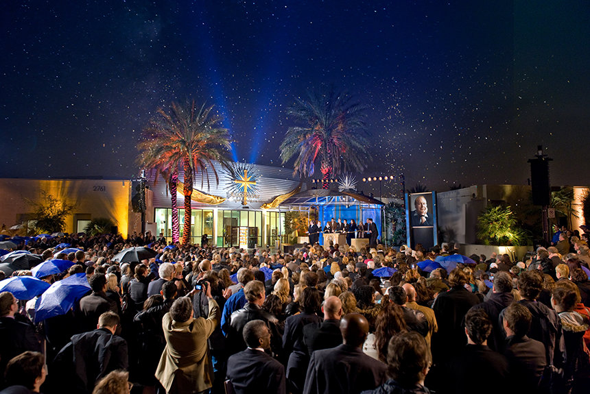 Amikor L. Ron Hubbard arról beszélt, hogy »a művészi alkotásokat emberek nézik, emberek hallgatják, emberek érzik, és nem csak a beavatottak zárt körű csoportjának betevője, hanem minden ember lelki tápláléka«, akkor akár arra is utalhatott, amit ez a város a művészet és a szórakoztatóipar nemzetközi fővárosaként jelent – ahol a nagy rendezvények »Istentől valók«, és ahol semmi sem lehetetlen, ha a közönség lenyűgözése a cél – folytatta David Miscavige.