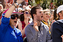 Lelkesen ünneplő tömeg vágja át a szalagot a fővárosban, és közben a texasi szabadságot ünnepli a város fő társadalmi folyosóján, amelynek neve „The Drag”.