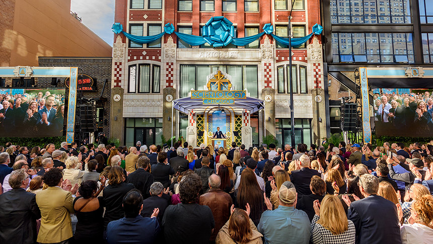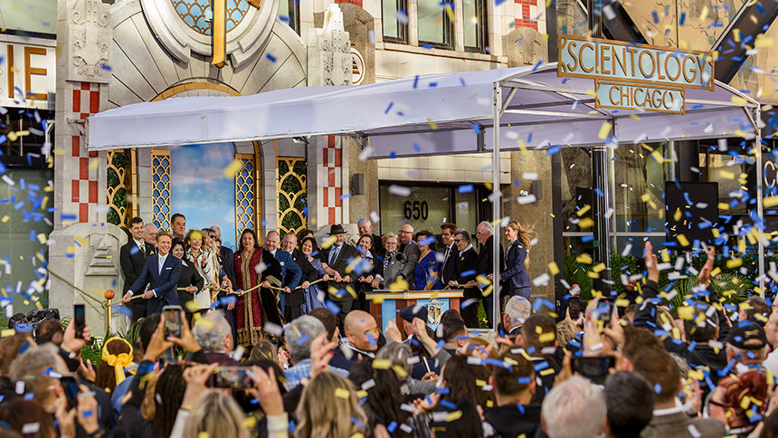 Chicago, az amerikai Középnyugat legnépesebb metropolisza egyben a sportrajongók mekkája, a Bulls, a Cubs, a White Sox, a Blackhawks és a Da Bears otthona. Chicago szereti a sportcsapatait, talán még jobban is, mint bármely más város. A szalagátvágó rendezvényen részt vevők épp olyan zajosan ünnepeltek, mint ahogy korábban a bajnoki csapataiknak szurkoltak. Amikor a Scientologyról van szó, a megnyitó napján a nagy álmok városa büszkén hirdette: indul a meccs!