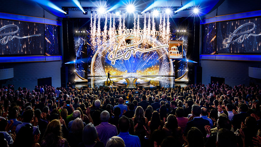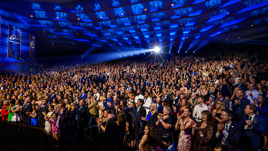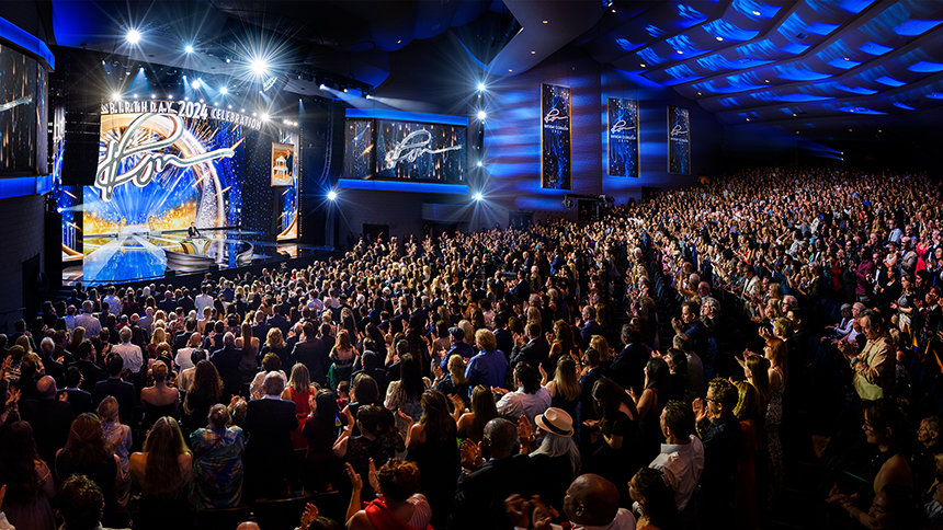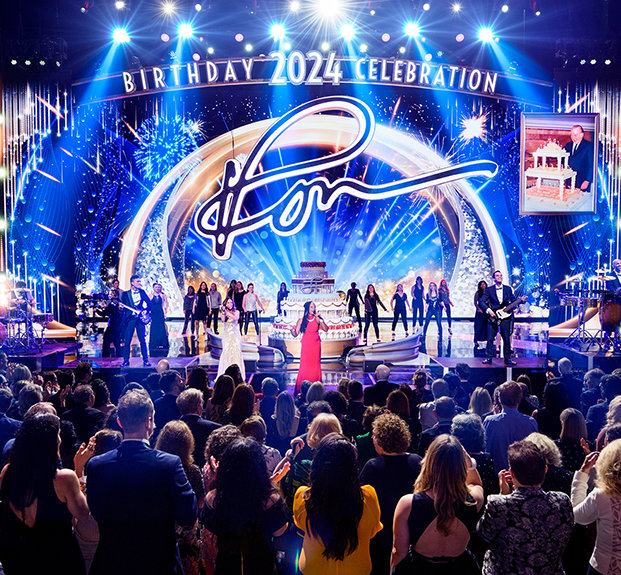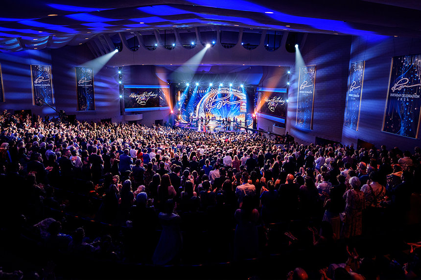 Egy páratlan zenekar tartott 30 perces, felvillanyozó koncertet – amelyhez szólisták és táncosok csatlakoztak, sőt, Stanley Clarke Grammy-díjas basszusgitáros is fellépett –, majd tűzijáték és álló taps (amelyből az este folyamán még több tucat lesz) köszöntötte David Miscavige-et, a Religious Technology Center Vezetőtestületének Elnökét, amikor színpadra lépett L. Ron Hubbard (LRH) születésnapjának megünneplésére.