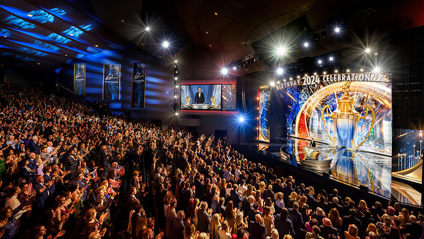 Visszatérve Clearwater nevezetes előadó művészeti központjába, David Miscavige először L. Ron Hubbard emléke előtt tisztelgett, majd üdvözölte a megjelent több ezer embert, akik közeli helyekről és a világ távoli tájairól érkeztek, hogy megünnepeljék mindazt, ami a legutóbbi születésnapi összejövetel óta történt.