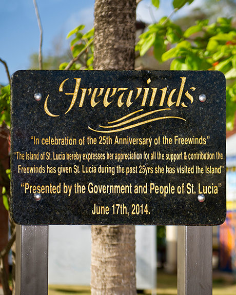 - Egy emlékmű St. Lucia kikötőjében a kormány és a lakosság nevében elismeri mindazt a támogatást, amelyet a Freewinds a népnek nyújtott.