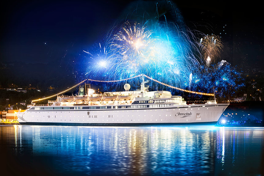 Június 14-én, szombat este tűzijáték kíséretében futott ki a Saint Kitts-öbölből a Freewinds – a Szcientológia hajója – ezüst évfordulós útjára.