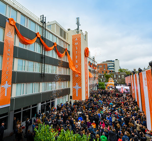 - És a következő hétvégén, október 28-án került sor egy szembeszökő új Scientology Egyház megnyitójára Amszterdam „Knowledge Mile” nevű főútvonalán.