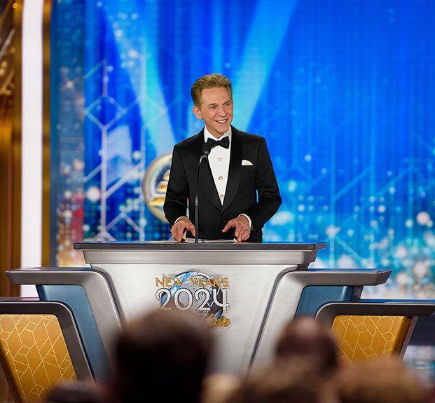 „A hagyományoknak megfelelően újévi rendezvényünk estéjén áttekintjük az LRH-technológia alkalmazásának különböző területeit” – kezdte David Miscavige. A közönség feszült érdeklődéssel hallgatta a lélegzetelállító esthez adott előzetest, amely után David Miscavige hozzátette: „Nemcsak az elmúlt évre koccintunk, hanem begyújtjuk a tömény rakéta-üzemanyagot, és lerepítjük az előadóterem tetejét, ahogy a 2024-es új évbe emelkedünk!”