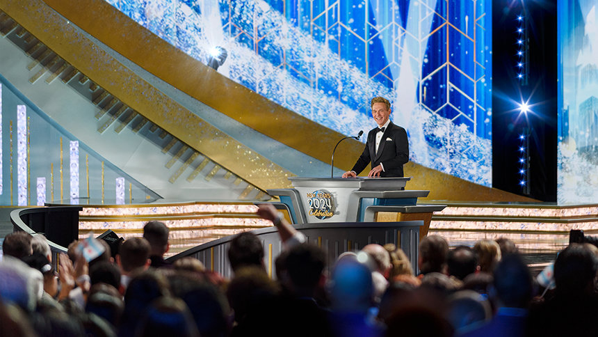 A Los Angeles-i Shrine Auditorium pompája adta a hátteret ehhez az elegáns és lelkesítő estéhez, amelyen több mint 6500 Scientologist és vendég gyűlt össze a Scientology lenyűgöző újévi ünnepségére.