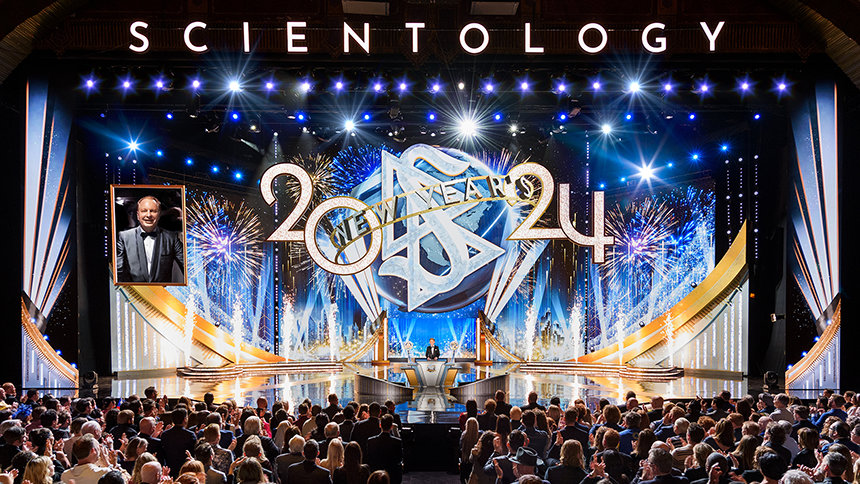 „Nemcsak az elmúlt évre koccintunk, hanem begyújtjuk a tömény rakéta-üzemanyagot, és lerepítjük az előadóterem tetejét, ahogy a 2024-es új évbe emelkedünk!” – David Miscavige, a Religious Technology Center Vezetőtestületének Elnöke