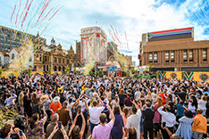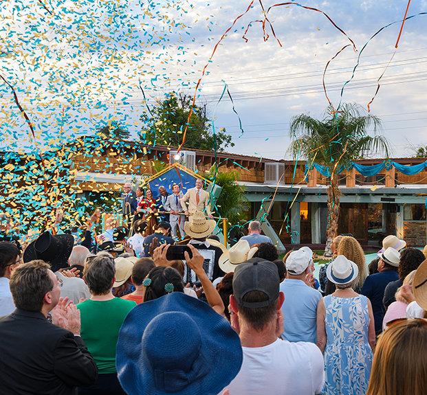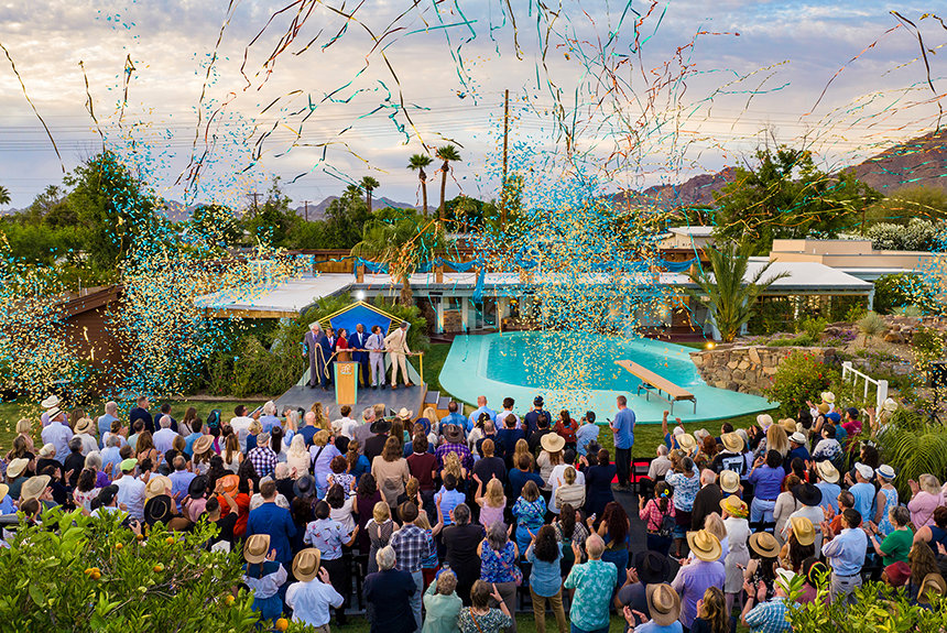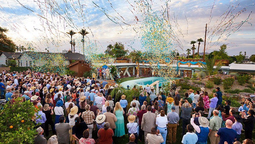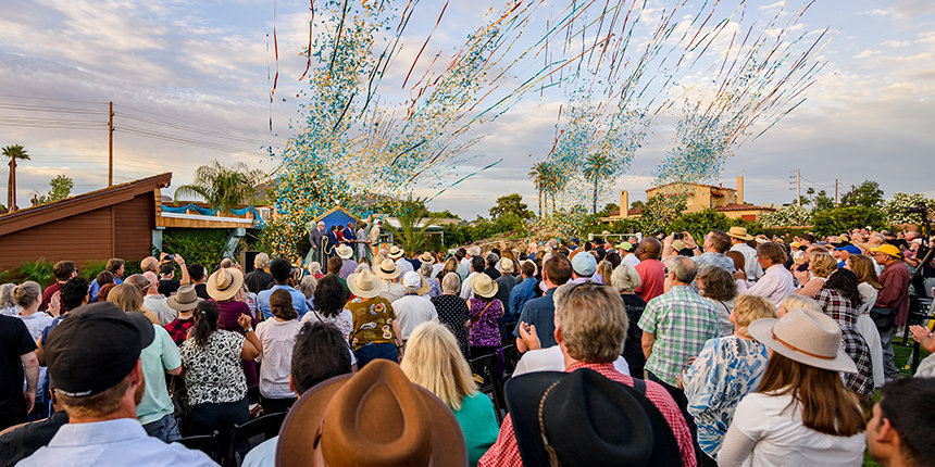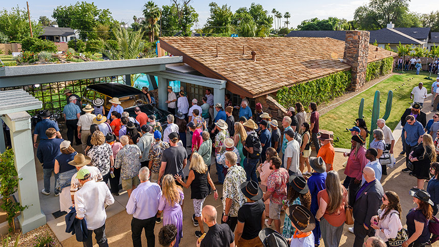 A lemenő arizonai nap fényében Scientologistok, közösségi vezetők és történészek sereglették körül az Osborn Road‑i helyszínt, hogy együtt ünnepeljék a felújított Emlékhely ünnepélyes szalaghúzását. A látogatók odabent értékes történelmi relikviákat láthattak, köztük Mr. Hubbard eredeti íróasztalát is, amelynél a Dianetics 55! című, mérföldkőnek számító művét írta.