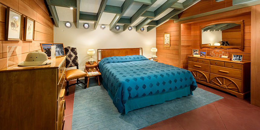 A kiállítás olyan személyes tárgyakat is bemutat, mint a Hammond S4 orgona – Mr. Hubbard kedvenc hangszere –, valamint a Coronado sztereószekrény, amely egykor keringőkkel és dzsesszritmusokkal töltötte meg a ház minden zugát. A látogatók a bejárat előtt megcsodálhatták a gleccserkék Harley-Davidson Hydra-Glide motort és az 1951-es Chevrolet Deluxe Station Wagont – eredeti pompájukban.